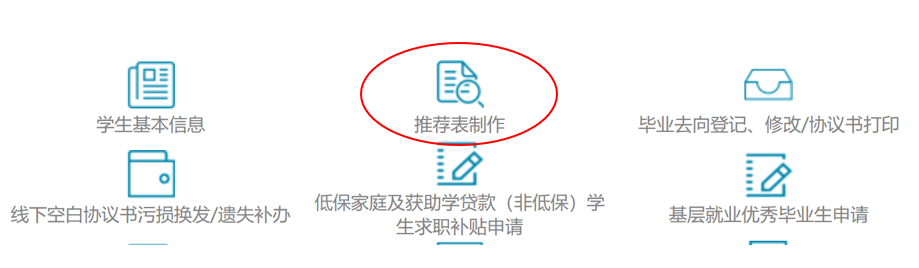 1、登入后进入“就业管理”模块,选择“推荐表制作”。